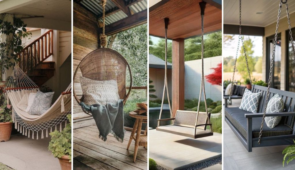 Swinging motion appears minimal yet impactful. Porch transforms into modern design showcase effortlessly.