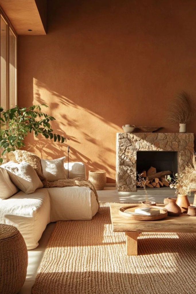 Sandy ochres, terracotta, muted blush dominate interiors warmly. Textures evoke dunes and cracked clay under shifting sunlight.