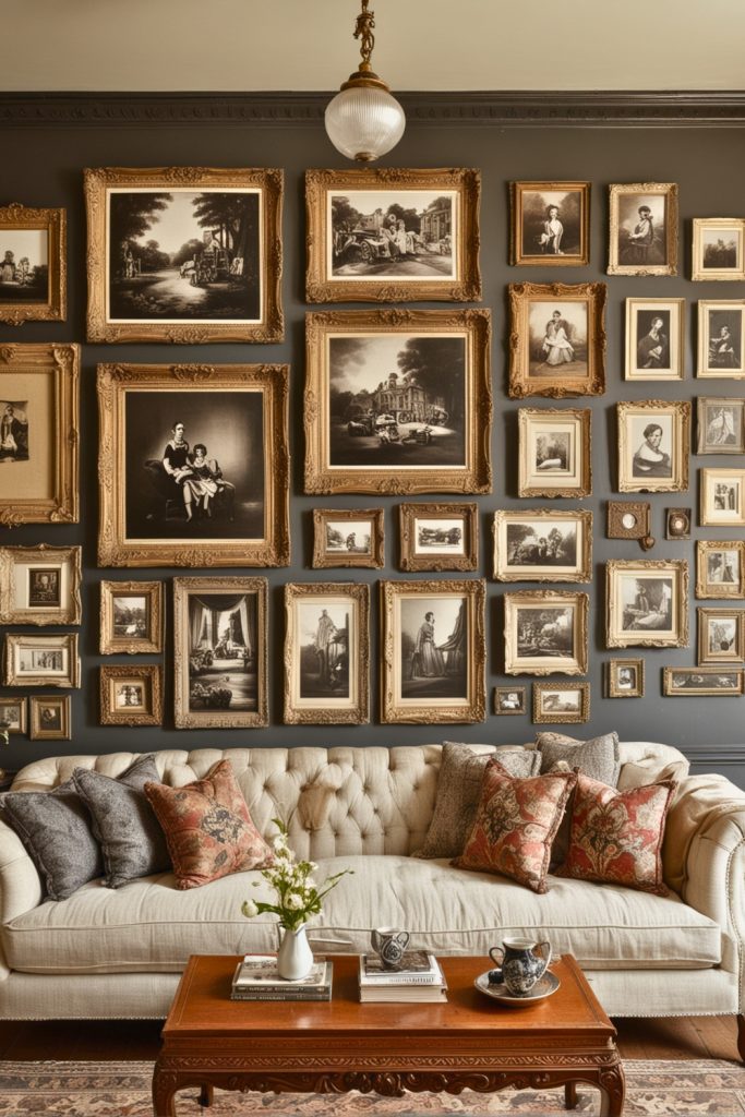 Combining these in ornate frames creates a dynamic and cohesive display. It’s all about the mix; varied frame styles and sizes bring an eclectic, curated feel.