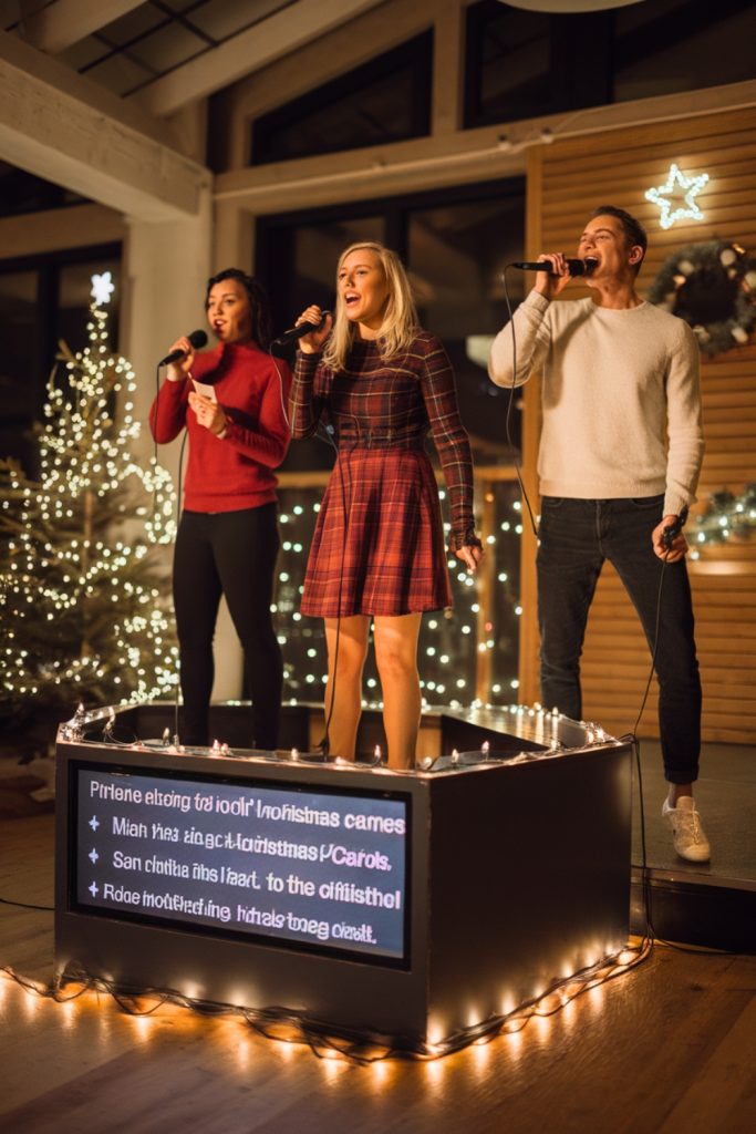 Set up a karaoke machine or screen with popular Christmas songs, and let participants sing their hearts out to seasonal favorites.